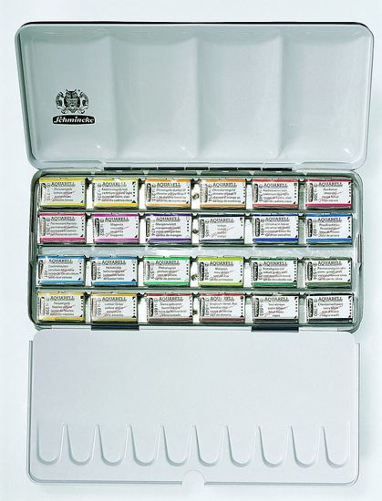 H σειρά HORADAM® αποτελεί τη ναυαρχίδα στην κατηγορία της ακουαρέλας ,της εταιρίας Schmincke.139 αποχρώσεις, διαθέσιμες σε πλακίδια αλλά και σωληνάρια χρησιμοποιούν την Αραβική γόμμα ως συγκολλητική ουσία και σε συνδυασμό με την υψηλή ποιότητα χρωστικών και την χρονοβόρα διαδικασία παρασκευής ,εγγυώνται μέγιστη αντοχή στο φως καθώς και λαμπρότητα και σταθερότητα στο χρώμα. Σε μεταλλική θήκη. Περιέχει 24 τμχ.